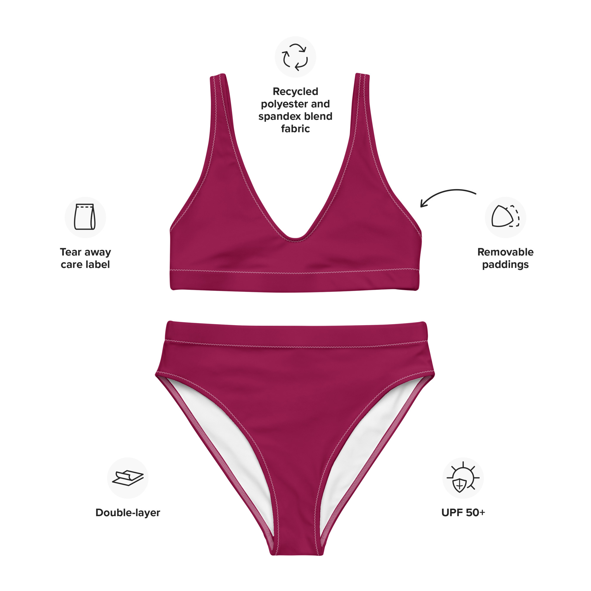 • Stoffzusammensetzung in der EU: 88 % recyceltes Polyester, 12 % Elastan